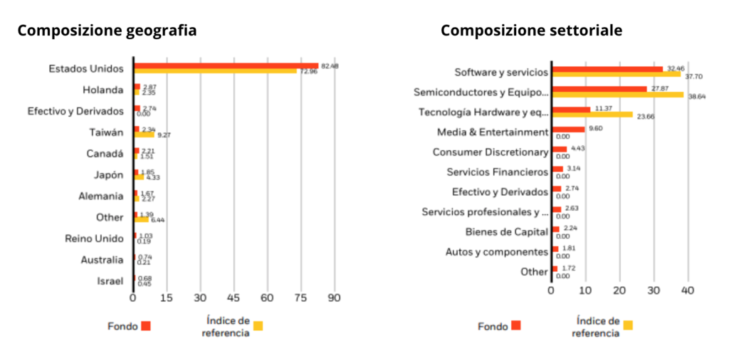 Benchmark index: the active approach allows managers to include instruments not present in the benchmark, which is the MSCI AC World Information Technology 10/40 index, to take advantage of opportunities identified in the market. However, the index is considered for portfolio construction, for proper risk management and to compare performance results.
