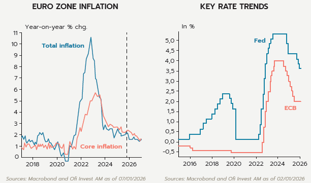 The European Central Bank (ECB) appears to have reached a point of equilibrium, with euro area inflation stabilizing close to the 2% target and an easing cycle that unfolded in 25-basis-point steps and ended in early June 2025. However, escalating geopolitical tensions are making macroeconomic assessment more complex. Inflationary pressures could resurface if the war in Iran persists, which is why market scenarios now factor in a first rate hike movement around mid-June. In this context, we are maintaining our cautious stance: controlled and contained interest-rate sensitivity, no hedging on short maturities, and an opportunistic approach beyond three months depending on carry.
