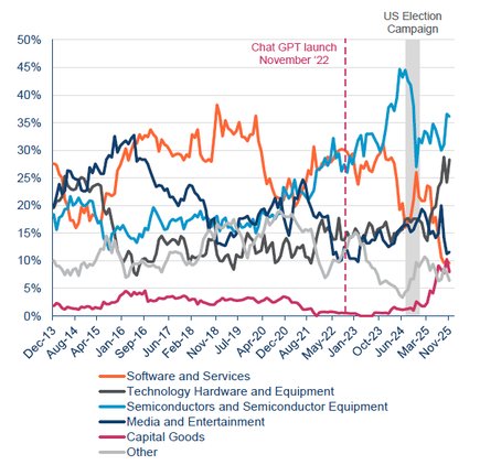 A more selective approach is required as the market is starting to discern which companies are AI winners (enablers or beneficiaries) and which are at risk of being left behind. We believe active management is key to capturing the opportunities here.