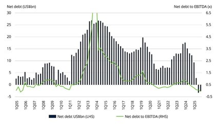 Chart 4: Balance sheets shifting from net debt to cash as high free cash flow enables deleveraging.
