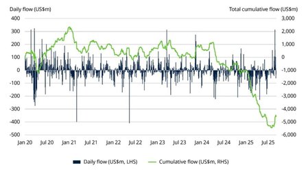 Chart 5: Gold producer equity ETFs (cumulative flows from 2020 to the present)Chart 5: Gold producer equity ETFs (cumulative flows from 2020 to the present)