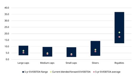 Chart 3: EV/EBITDA multiples are still near the lower end of the 5-year range across producers.