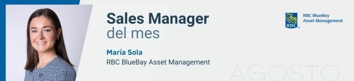 Te presentamos a María Sola, senior associate de desarrollo de negocio en RBC BlueBay AM. Ocupa este cargo desde octubre de 2023. Anteriormente trabajó como relationship manager en la británica M&G Investments, habiendo iniciado su carrera en la gestión de activos en Amundi AM, en el equipo de marketing.