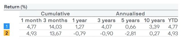 Como se puede ver arriba, mirando el retorno a 3 años y a 5 años se aprecia que el fondo de inversión aporta alfa (supera a su índice de referencia).