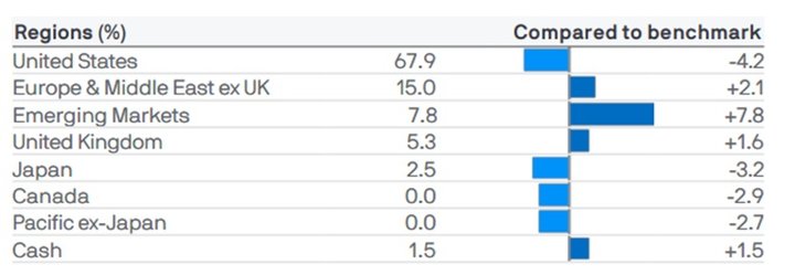 El posicionamiento del JPMorgan Funds - Global Focus muestra la libertad de inversión respecto del benchmark y la convicción del equipo de inversiones a la hora de seleccionar acciones. Esto se debe al respaldo global que tienen JP Morgan AM, lo que les permite tener una gran capacidad de análisis a nivel global. Por otro lado, no debemos dejar de lado que aplican criterios de sostenibilidad y el fondo está clasificado como artículo 8 según el Reglamento europeo SFDR, lo que es no menor.