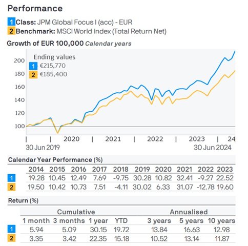 Fuente: Factsheet del JPMorgan Funds - Global Focus Fund I EUR a 30/06/2024.