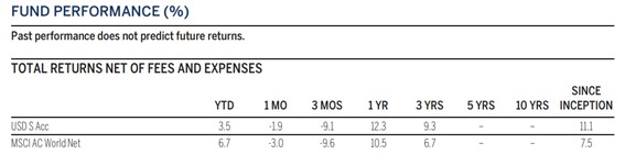 Tal y como se aprecia en la tabla de arriba, es un fondo que consigue batir a su benchmark en distintos períodos de tiempo. Fue lanzado en enero de 2019, así que estamos a poco tiempo de ver métricas de cinco años también, pues siempre recomendamos mirar los resultados a tres y cinco años para evaluar su consistencia y rendimientos.