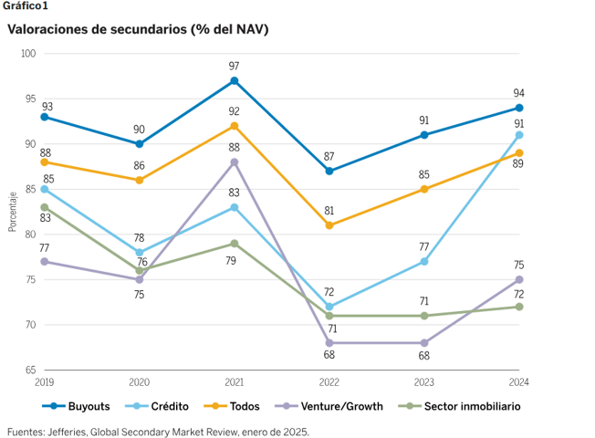 7 «Secondaries in 2025: the outlook for fundraising, deals, and performance», Preqin, datos a 27 de enero de 2025.