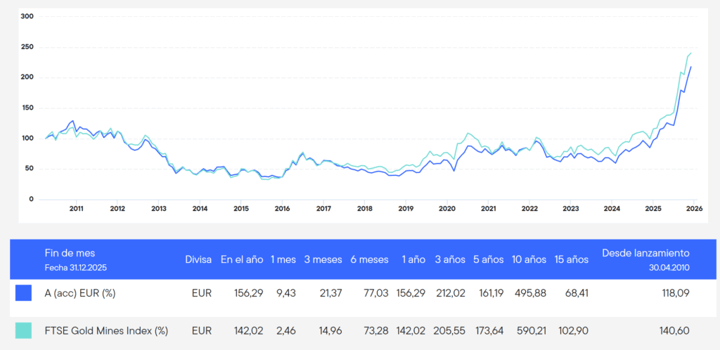 El fondo Franklin Gold & Precious Metals es un fondo temático que invierte en renta variable global y está domiciliado en Luxemburgo. Lanzado en abril de 2010, se centra en el sector de los metales preciosos, en particular en las empresas vinculadas a la extracción, procesamiento o comercio de oro, plata, platino y paladio.