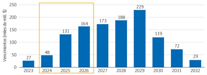 Febrero de 2024: Muro de vencimientos del high yield (miles de millones de USD)