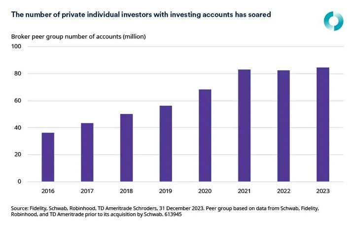 En 2023, el número de personas con cuentas de trading en uno de los cuatro brokers principales fue más del doble que en 2016.