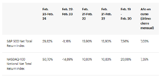 Todos los datos: Bloomberg, 29 de febrero de 2024.