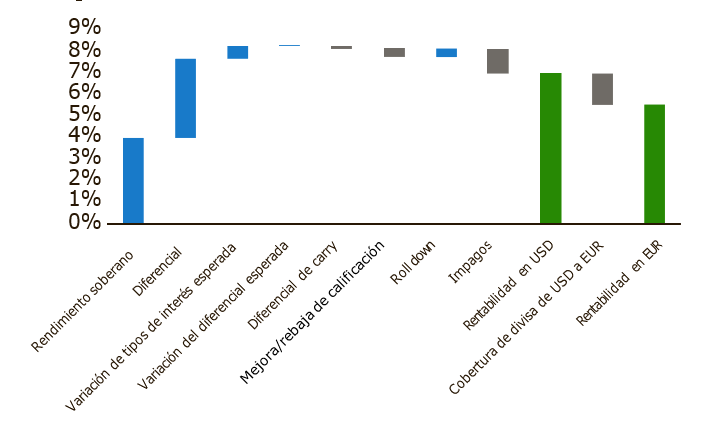 Gráfico 2: Rentabilidades esperadas para la renta fija corporativa high yield en USD