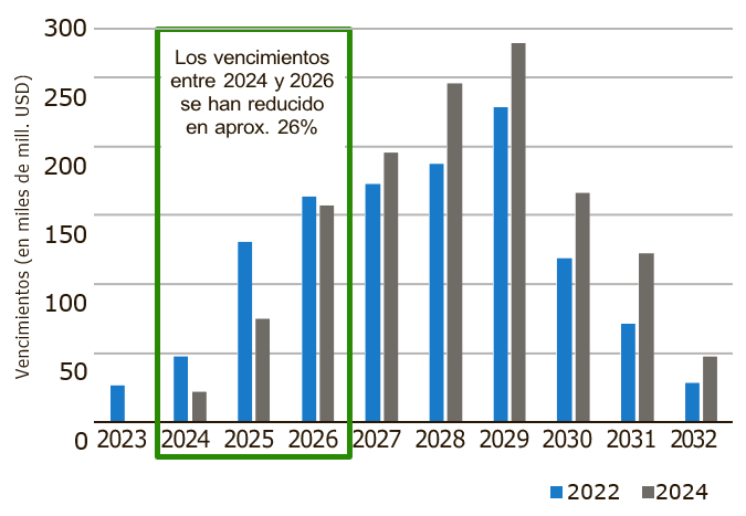 Los vencimientos entre 2024 y 2026 se han reducido en aprox. 26%