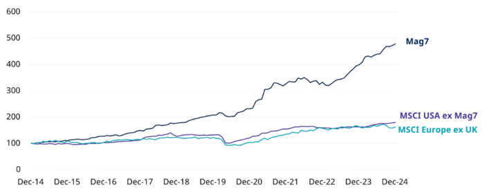 2. Las ganancias obtenidas por las empresas europeas en la última década han estado a la par con las acciones estadounidenses más allá de los «Siete Magníficos».