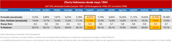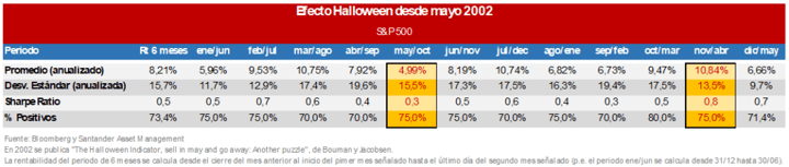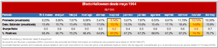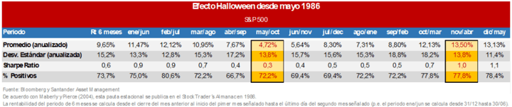 Es importante tener en cuenta que, de cara a tomar decisiones de inversión, las pautas estacionales son tan sólo una herramienta más. Aunque consistente hasta ahora, nada dice que mañana el Efecto Halloween pueda dejar de existir.