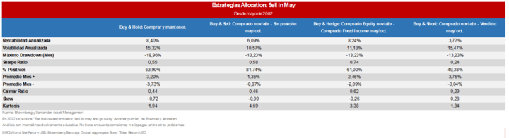 Tabla 6: Backtest de diferentes estrategias basadas en Sell in May desde 2002