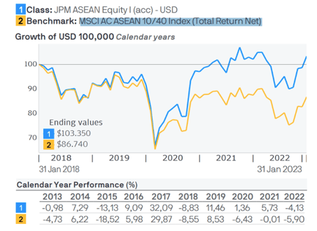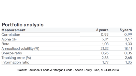 Fuente: Factsheet Fondo JPMorgan Funds - Asean Equity Fund, al 31-01-2023
