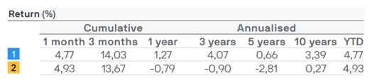 Come si può vedere sopra, guardando il rendimento a 3 e 5 anni, che sono le misure considerate dagli investitori istituzionali (poiché forniscono un indicatore di consistenza più che solo una foto dell'ultimo anno), si può notare che il fondo aggiunge alfa (supera il suo indice di riferimento).