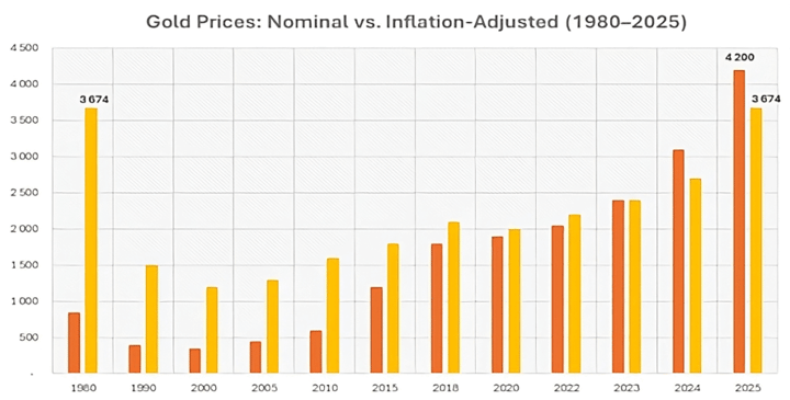Per Maylix Brianto, CAIA, MBA, CESGA, MCSI, Wealth Manager presso Swiss External Asset Manager and Multifamily Office, il 2025 segna un passaggio storico nella percezione dell’oro. L’esperta ricorda come il metallo prezioso abbia “finalmente superato il suo picco del 1980 corretto per l'inflazione di $3.674/oz”, spingendosi poi “oltre $4.100/oz a novembre”.