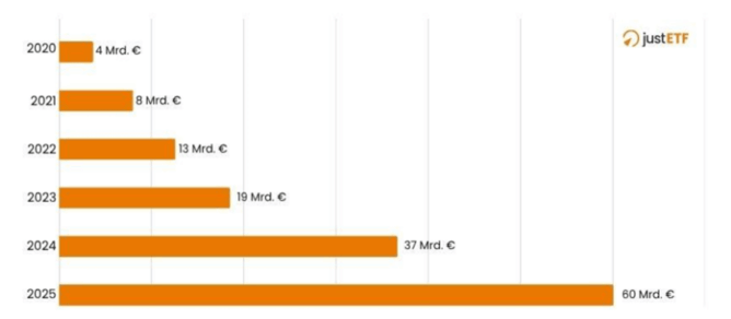 Masse gestite,fonte: justETF, 29/09/2025