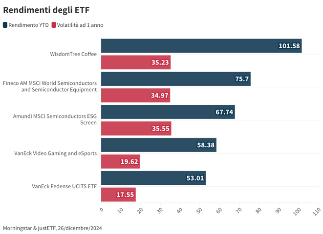 In questo articolo, esamineremo da vicino i cinque ETF negoziati in Italia che si sono distinti per le loro prestazioni nel corso di quest'anno (escludendo gli ETF legati alle criptovalute, a causa della loro estrema volatilità) secondo i dati di JustETF e Morningstar. Continua a leggere per scoprire quali sono!