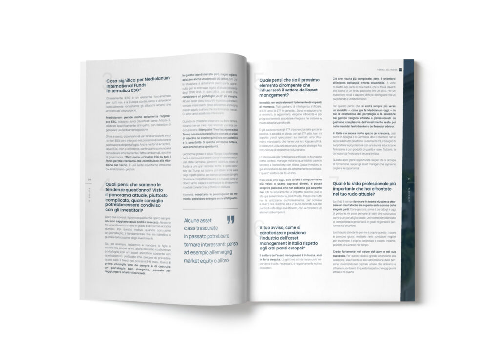 Abbiamo anche avuto il piacere di intervistare Giorgio Carlino, Head of Multimanager di Mediolanum International, che ci ha offerto una panoramica sul settore dei fondi e dell’asset management in Italia, spiegando il processo di investimento della sua società, la composizione del suo team e molti altri aspetti interessanti.