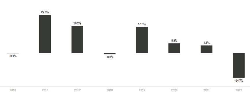 La rentabilidad año calendario, como se puede ver en el gráfico de arriba en general se encuentra en niveles sobre lo esperado para la clase de activo en el promedio.