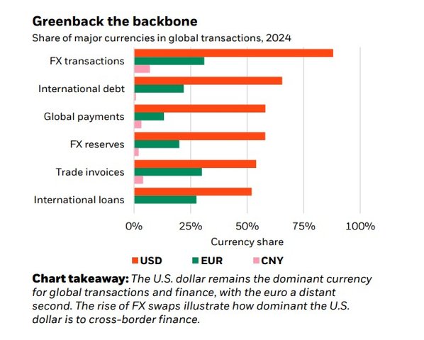 Se necesitaron décadas y guerras mundiales para que el dólar reemplazara a la libra esterlina y al oro como principal activo de reserva. Su papel central se ha reforzado desde la crisis financiera mundial. El dólar aparece en casi el 90% de las transacciones de divisas.