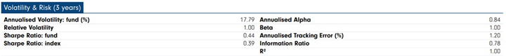 A tres años el ETF ha superado ligeramente a su benchmark y, aunque lleva a cabo una gran selección en su cartera (manteniendo un tercio de la cantidad de compañías versus su índice) el fondo tiene el mismo riesgo del mercado con el que compite.